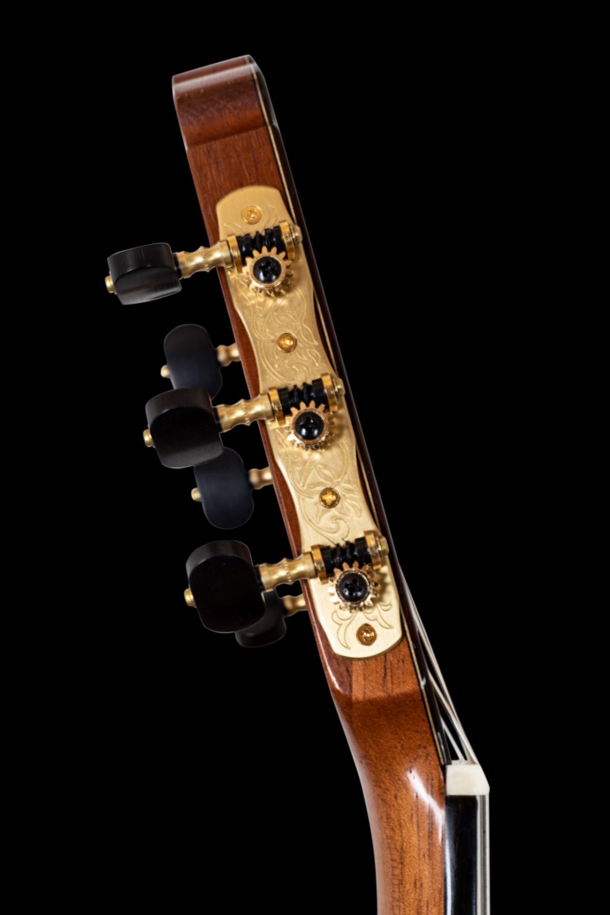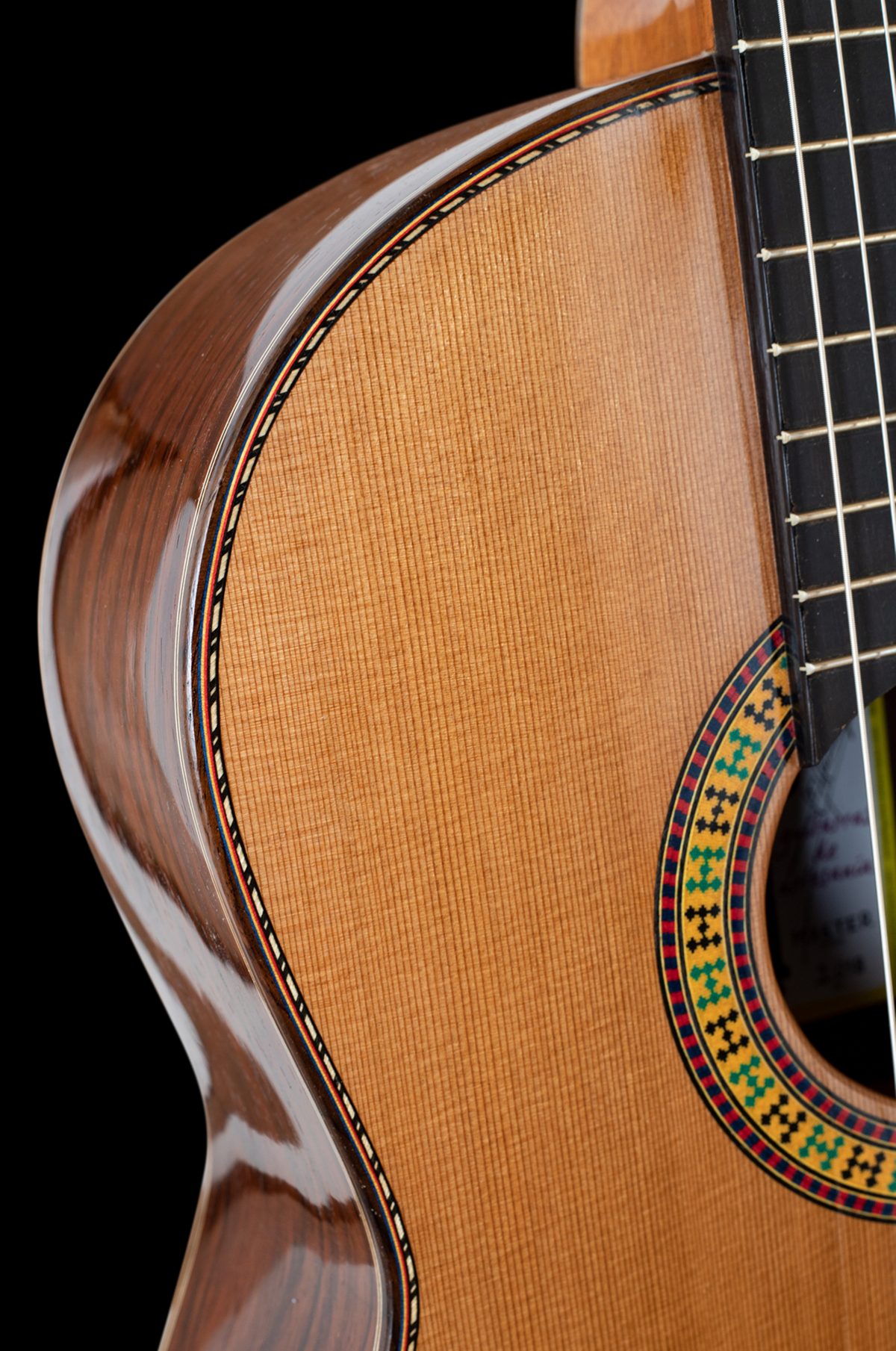 Josep Henríquez’ personal, atypical design and construction puts his guitars in a new concept in the guitar making. The shape has an exclusive cutaway, starting on the 13th fret, allowing the guitarist to gain comfortable access to the higher register of the instrument.